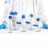Cultivo celular: Las botellas Single-Use, disponibles en diferentes tamaños y con conexiones para mangueras, se utilizan en procesos de cultivo celular para la toma estéril, la recogida y el almacenamiento de muestras de proceso procedentes de biorreactores.