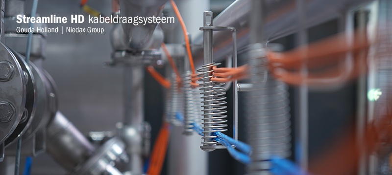 De modulariteit van de Gouda Holland en Niedax-systemen sluit perfect aan bij de filosofie van OCTONIQ. Net zoals het CIP-systeem zelf kan worden aangepast aan veranderende productieomstandigheden, bieden de Niedax Gouda Holland Streamline HD kabelhouders flexibiliteit in routing en uitbreiding. Wanneer gebruikers van een OCTONIQ-installatie uitbreidingen of aanpassingen wil doorvoeren kunnen de kabeltrajecten mee worden aangepast zonder grote verbouwingen of compromissen op het gebied van hygiëne.